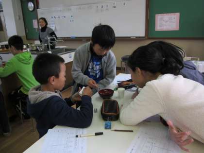 みそ汁をつくるにあたって、五感を使って「だし」を味わう授業でした。