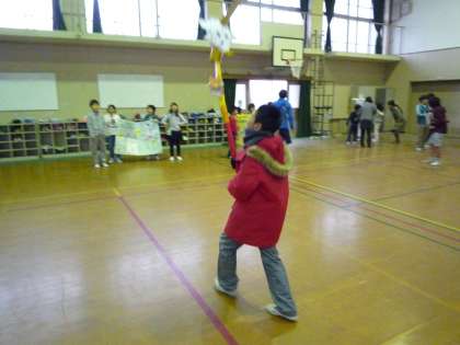 剣鉾を体験したり,発表を聞いたりと楽しんでいました。