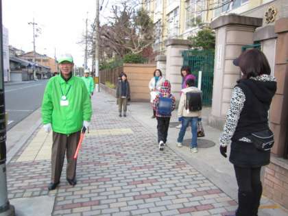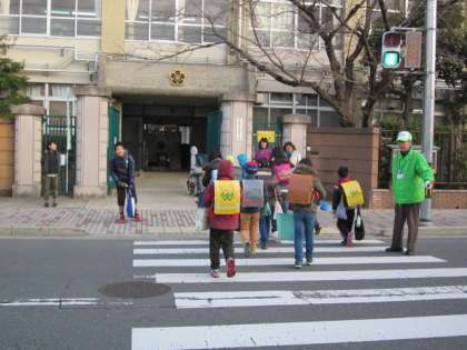 この週間では、登校時に教職員が校門に立って子どもたちを出迎えています。