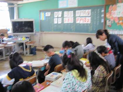 参観日に多くの保護者の皆様の参観がありました。早足でまわりましたが,電子黒板を使っての授業,しっかり記述する場面,自分の考えをクラスのみんなに伝えて集団思考につながる場面などを見ることができました。