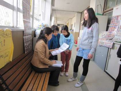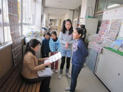 2年生が九九を言っているのと同じように、5年生が百人一首を言いにきています。