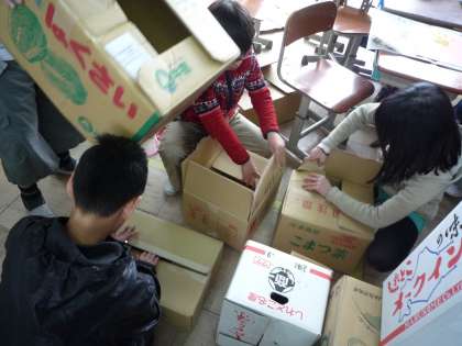 たった45分間でしたが,みんなで協力した結果,素敵なダンボールハウスを完成することができました。