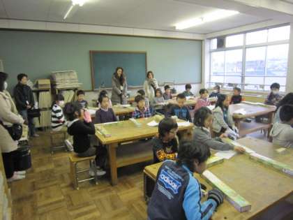 国語の授業から、「かるた」や「しりょうから分かったことを発表しよう」。図画工作は、図工室で「トントンサクサク木の名人」で、釘打ちに挑戦。