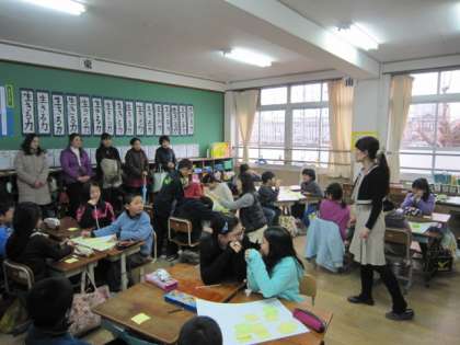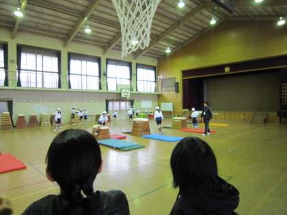 5時間目の体育、「とび箱」と保健の「大人に近づく体」の様子です。今日の参観では、いろいろな学年で養護教諭も、スクールサポーターも授業で活躍しています。