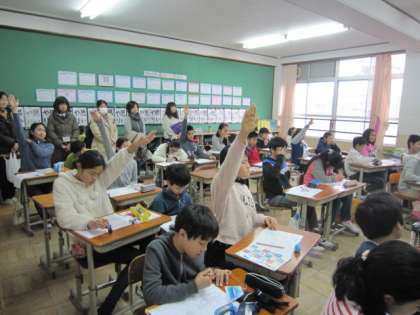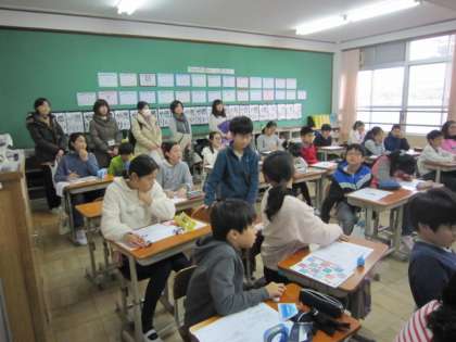 5時間目は保健で1組が「病気の予防」。2組は図画工作で「版を生かして」。それぞれの学級で、発表したり、色をつけたりするなど、落ち着いて学習する様子を見ていただきました。