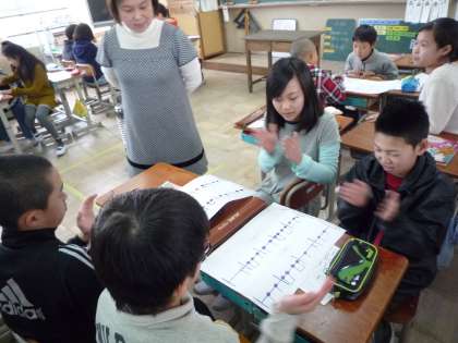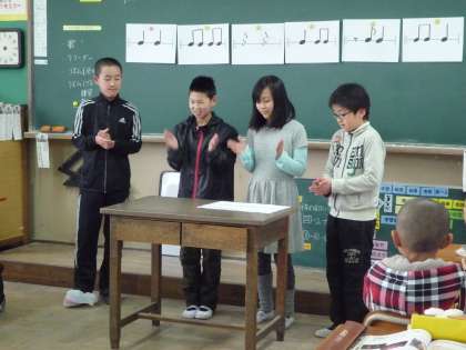 音楽の授業では,班で練習してきたリズムを発表しました。