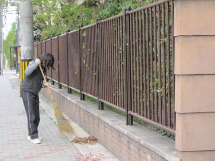 入学式を,華やかに飾ってくれた桜の花が散り始めました。子どもたちが登校する前に,本校の正門及び学校周辺の通学路に散らばった花びらを,管理用務員の方が綺麗に清掃してくれています。花びらで,滑ってこけないように,安全に配慮してくれています。本当に,ありがとうございます。