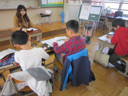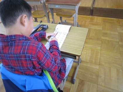 土曜学習を実施しました。今日は朝から小雪が舞う,大変寒い日でした。学生スタッフさんの支援を受けて,がんばって自分の学習に取り組んでいました。