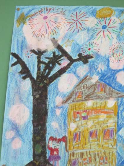 担任の指導のもとに,「スクラッチ」の技法を取り入れた子どもたちの作品は,伸び伸びとしていて,夢が溢れんばかりの素晴らしい作品ばかりです。