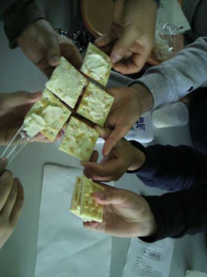 完成したものをクラッカーにのせて,いただきました。