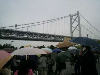 与島のPA。雨の中の記念撮影です。