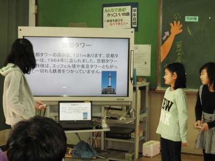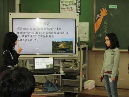 金閣寺や清水寺、また校区の吉田神社や京都大学なども英語で紹介しました。