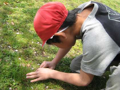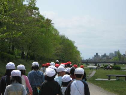 4月21日(水)暖かい日差しにつつまれて,鴨川の春を見つけに行ってきました。春の植物ではオオイヌノフグリやナズナ,生きものではテントウムシ,ダンゴムシ,カナヘビを見つけて,しっかりと様子を観察していました。