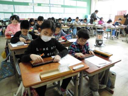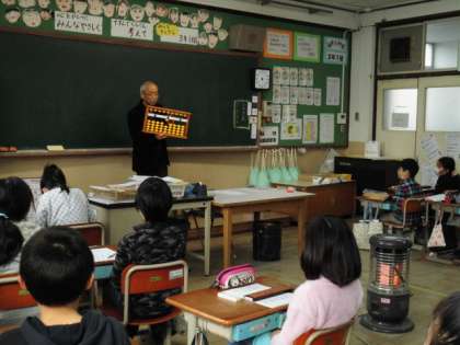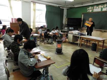 3年生が、3日間、そろばんの先生お二人にそろばんを教えていただきました。