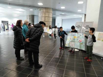 3年生が、この1年間取り組んできた総合的な学習の時間の最後の発表会を、京大総合博物館で行いました。ちょうど、博物館の休館日でしたので、ロビーをお借りしたようになりました。