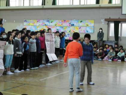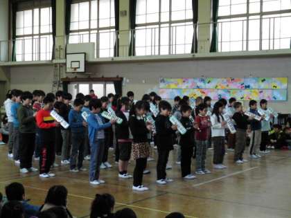 2年生、3年生、4年生とどの学年も工夫をして、6年生への言葉や演奏を用意しました。