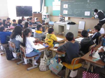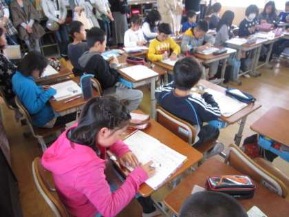 4年生は算数の授業参観でした。「角とその大きさ」という単元で、180度を超える角の測り方を考えました。ノートで、分度器を動かしながら、しっかり考えました。分度器を使って測るときは、お家の人の前で緊張していたかもしれません。