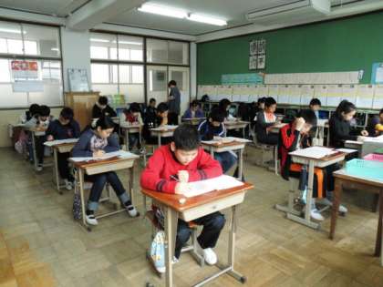 朝の1時間目から4時間目まで、6年生が国語A算数A、国語B、算数B、理科に挑戦しました。また午後からは、質問紙の調査もありました。
