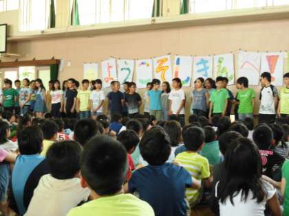 「一年生を迎える会」では,4年生としてばちっとかっこよく伝えることができました。特に,「ようこそ!」とみんなで声を合わせていうときには,テンションMAXでがんばっていました。さすが4年生!やるときはやる!!元気いっぱいの4年生を伝えられました。