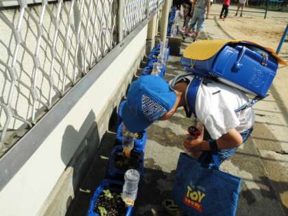 アサガオの水やり頑張っています。