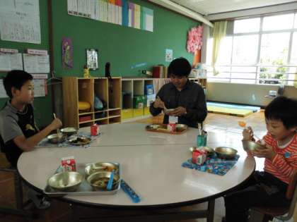 今日は給食の時間や昼学習の時間にウィル先生が来てくれました。