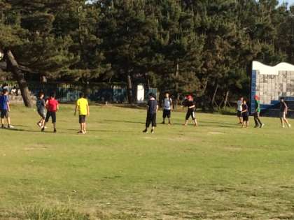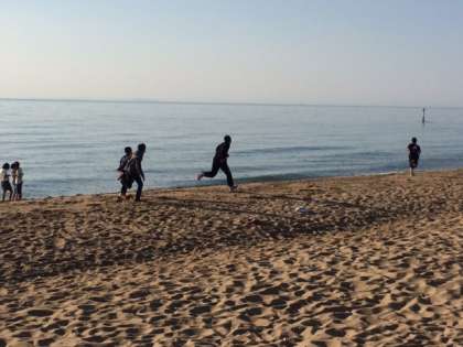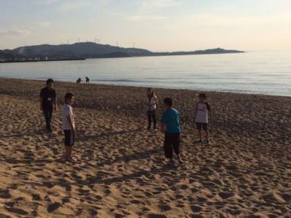 宿舎の前の砂浜で、素敵な時を楽しんでいます。