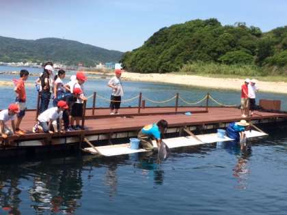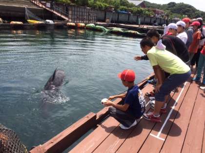 ドルフィンファームにいきました。ここでは、桟橋からイルカを間近に見られました。ちょうど、えさの時間と重なり、イルカの芸も少しみせて貰いました。