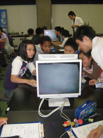 −30度に冷やされた雲箱の中で冷やされた水蒸気が雲となり,きらきらと輝いている幻想的な様子に子どもたちは感嘆の声があがっていました。実際にさまざまな器具を使って本格的な実験ができる科学センター学習が子どもたちは大好きです。