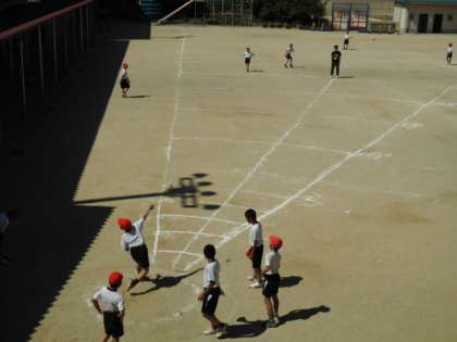 今日は、運動場を使ってのソフトボール投げです。1年生は、まだまだ投げ方が出来上がっていないのですぐ前に投げてしまう子も多いのですが、6年生になると30メートル、40メートルと記録を出す子も出てきます。6年間の子どもたちの成長に、びっくりさせられます。