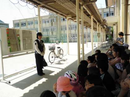 3年生の子ども達は,2時間目に川端警察署の方から,自転車の交通の決まりについて教えていただきました。