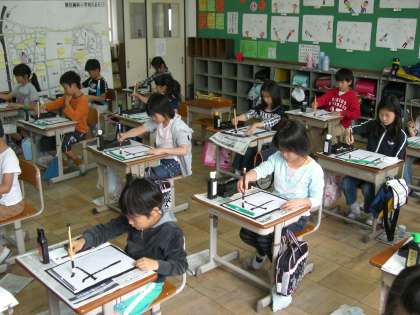 今日は,3年生になって初めての体験の習字がありました。