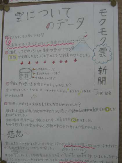 ‘6年生らしい複雑な実験で楽しかった’‘雲のしくみがよく分かった’などの感想から充実した学習だったことが伝わってきました。