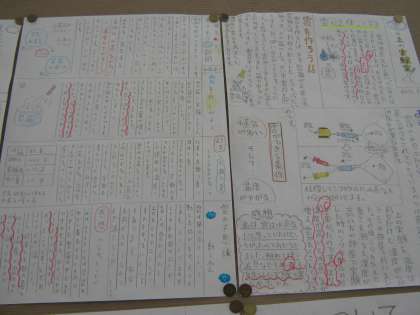 見出しを工夫したり,実験の様子を絵で表現したりなどの工夫が随所にみられました。