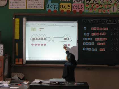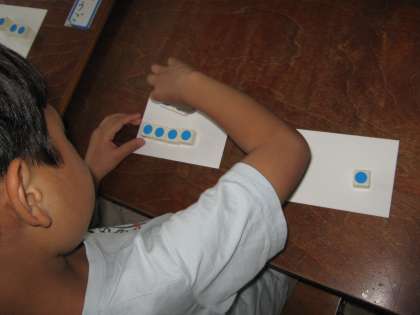 机の上で,数図ブロックを実際に動かして確かめながら学習をしました。