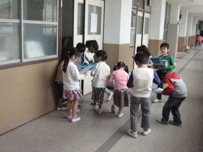 今回は,1年生だけで学校探検に行きました。はじめて使う探検ボードをもって,ドキドキワクワクの探検のスタートでした。