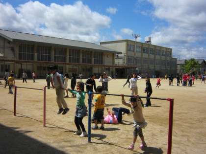 休み時間に,鉄棒を楽しんでいる姿がありました。