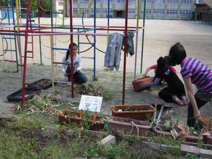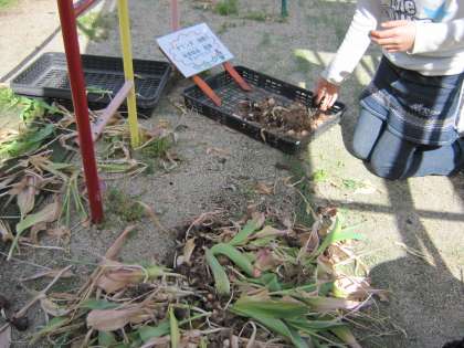 昨年,オランダ協会からいただいたチューリップがきれいな花を咲かせました。その後,球根ができていたので,また時期をみて植えたいと思い整理しています。