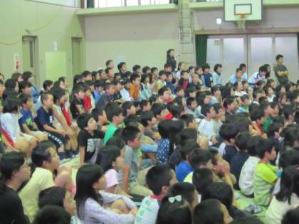 今年の文化鑑賞は、久しぶりの演劇でした。劇団の方は、体育館をうまく使ってお話の世界を作ってくださいました。お芝居が始まると子どもたちは、その動きや声の張りに驚き、お話の世界に吸い込まれていきます。とても心に残るお芝居をありがとうございました。
