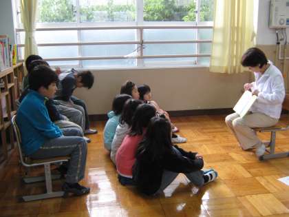 少しでも子どもたちに読書の楽しさを味わわせ,読書に進んで取り組めるようにという取組です。事前に先生がそれぞれお気に入りの絵本を選び,子どもたちに知らせておきます。子どもたちはその一覧表を見て,自分の聞きたいお話の教室に行くという取組です。たった5分間ですが,「自分でも読んでみたい・・・」とその本を読んだり,新たなジャンルへの挑戦をしたりという姿がみられます。次回は,秋に行います。