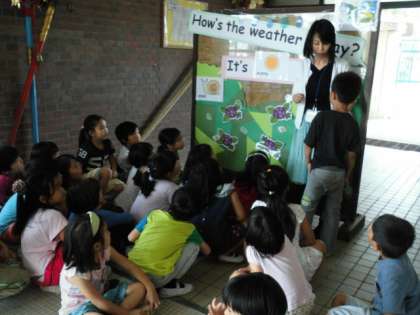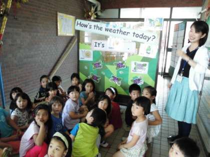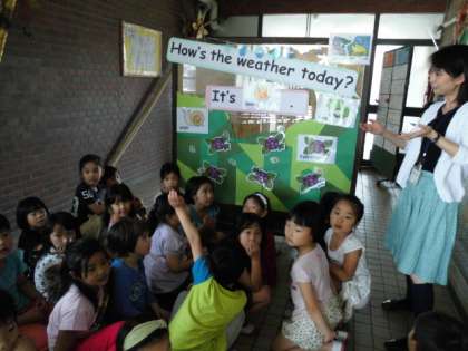一番下の写真は、「あじさい」の発音を、ネイティブの先生に教えてもらっているところです。