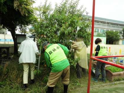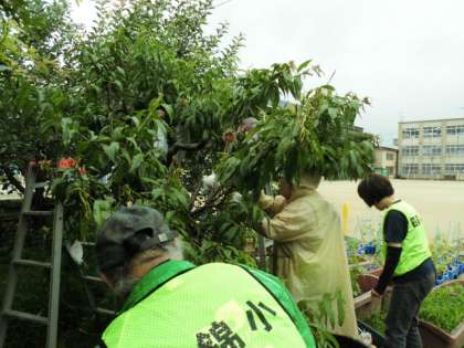 小雨の中、ビオトープの作業に来てくださいました。