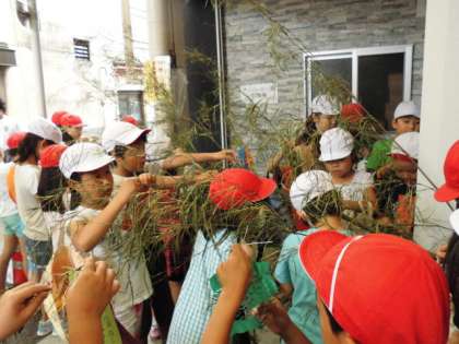 その笹にみんなで飾りをくくりつけました。