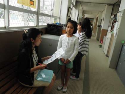 久しぶりに、行列のできるベンチに子どもたちが校長先生を待っていました。今日は、3年生が「百人一首」に挑戦していました。上の句を校長先生が少し言うと、子どもたちがリズムよく引き続いて言います。これから、もっと長い行列ができることでしょう。