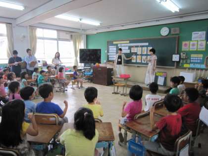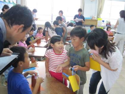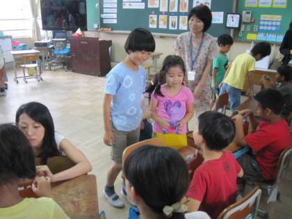 今日の5時間目は、2年1組の英語活動の研究授業でした。授業では、子どもたちの育てている野菜を使って、楽しく英語で友だちとやりとりをします。とっても元気にがんばる2年生の様子を、たくさんの先生が見守っていました。この後の研究協議の中でも、子どもたちのがんばりを褒めておられました。