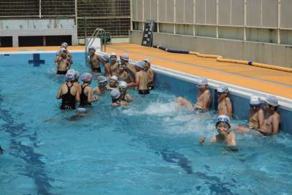 初めは水に慣れるということでプールの中を歩く,ボビングをする,バタ足をするといった活動をしました。