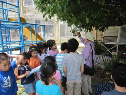 アオスジアゲハや、カメムシの卵を見つけたり、コゲラというキツツキが木をつついている様子を発見したりして驚きの連続でした。
