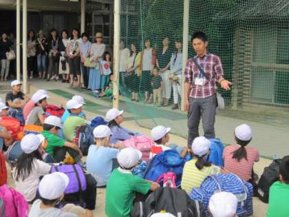 梅雨空がうそのように晴れ渡り、すばらしい天気のもとで、山の家の出発式が行われました。子どもたちの4泊5日に向けた思いや、大切にすることを確かめ、いよいよ出発です。解散式のときに、一回り大きくなって帰って来ることを今から楽しみにしています。