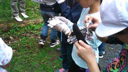 ピカピカになった後は、新聞紙でさらに磨きます。いい板ができました。この板は帰校後に、絵や字を書きます。