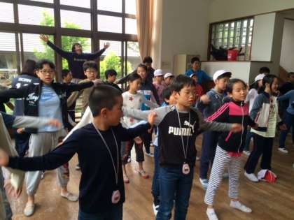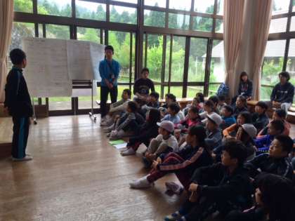 キャンプファイヤーで団結の火が燃え上がるよう、今日一日を頑張るようみんなで確認しました。