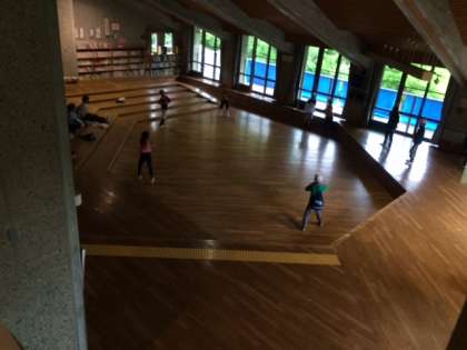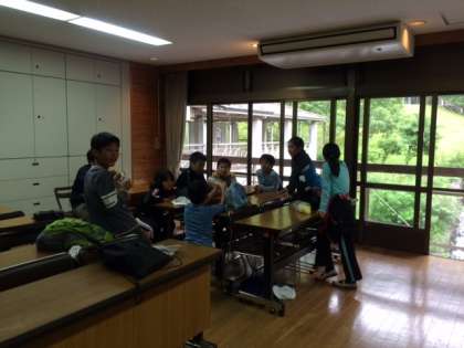 今晩のキャンプファイヤーの練習です。少しの時間でもみつけて練習です。
